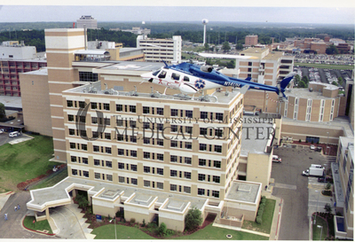 Photograph of the Critical Care Hospital with Air Care medical helicopter