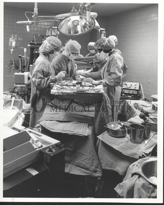 Black and white photograph of a cardiac surgery procedure performed at the University of Mississippi Medical Center