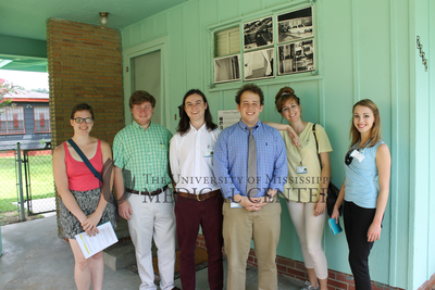 Color photograph of Frate Fellowship students. The Frate Fellowship is a structured five-week immersion experience on the University of Mississippi Medical Center campus in Jackson designed to give undergraduate students in the humanities a substantive exposure to the broad spectrum of ethical, social, and cultural issues associated with modern health care. The fellowship is named in honor of the late Dr. Dennis A. Frate, a medical anthropologist who examined health and health care by way of the human factors that determine how we experience illness, injury, and their treatment, and whose work was strongly informed by the humanities