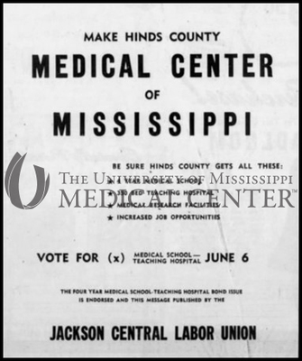 Jackson Central Labor Union flyer supporting bond vote for the University of Mississippi Medical Center
