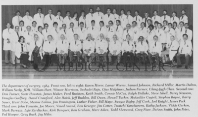 Group photograph of the 1984 University of Mississippi Medical Center Department of Surgery
