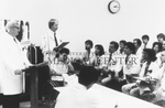 Dr. James Hardy is pictured with students in a classroom teaching session